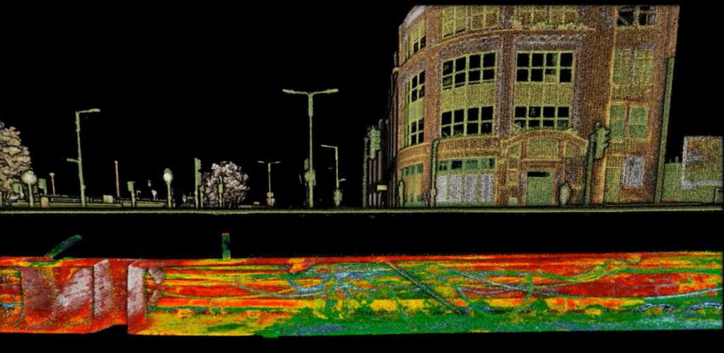 Image above shows raw data, captured using our backpack method. This is raw unfiltered data, look closely and you can see the surveyor.