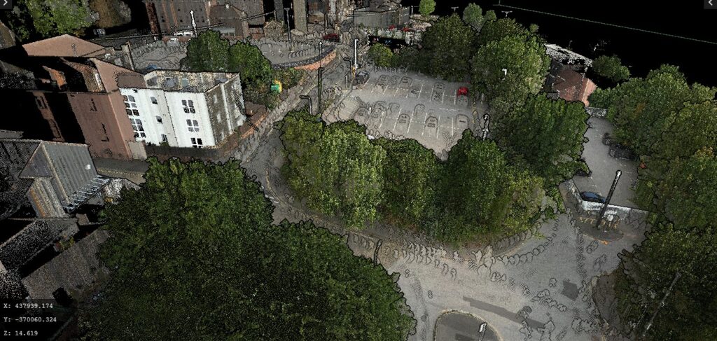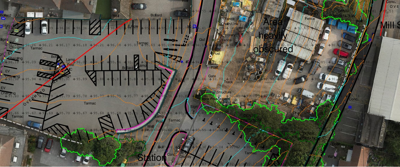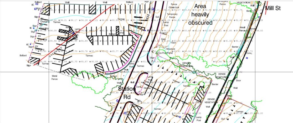- Point Cloud to CAD to your Specification: Using specialist software we convert our data to CAD vector lines, contours, buildings, roads, break lines, and watercourses. With individual points including spot levels, trees, and any other features.
